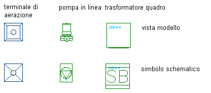 Sebbene per le parti parametriche non siano necessari simboli schematici, in genere tali simboli vengono creati per l'uso nei diagrammi schematici. Se priva di un simbolo schematico, la parte non è visibile nelle rappresentazioni schematiche di un sistema e può essere utilizzata anche nelle rappresentazioni unifilari e bifilari di un sistema nella vista Alto (piano). In tal modo è possibile facilitare la differenziazione dei sistemi in un design, ad esempio sistemi HVAC di fornitura e di ritorno.