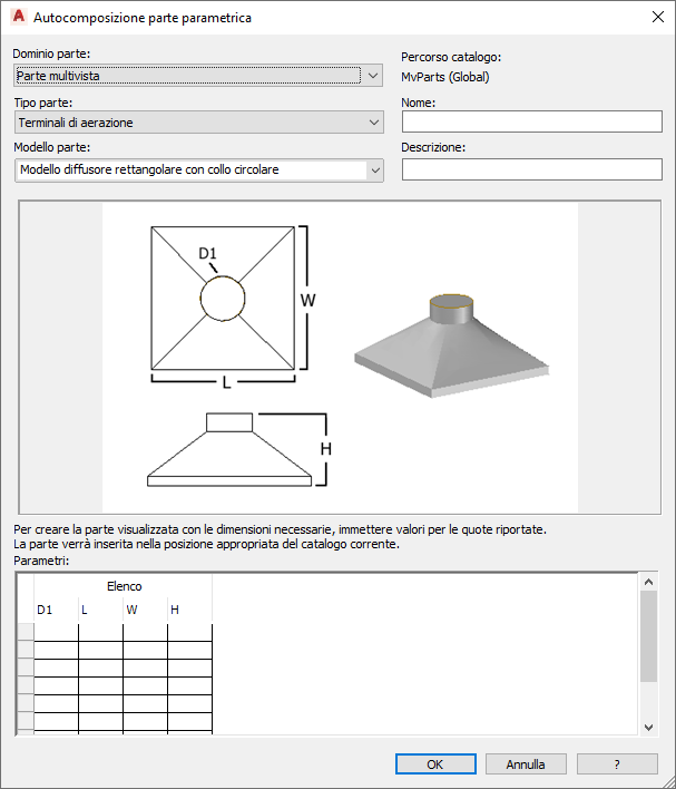 Per creare una parte parametrica utilizzando l'Autocomposizione parte parametrica