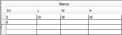 I valori vengono utilizzati per creare l'elenco di dimensioni parte. Per immettere un valore in una cella, fare doppio clic sulla cella, quindi immettere il valore. Per utilizzare i comandi Copia, Incolla e Cancella, fare clic con il pulsante destro del mouse sulla cella.