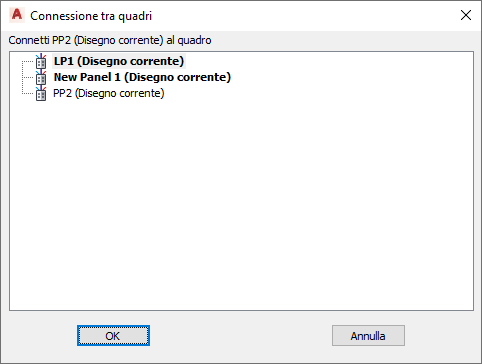 | Interruttore automatico alimentazione secondaria | Il quadro viene aggiunto come quadro con alimentazione secondaria ad un interruttore di alimentazione secondaria nel quadro collegato. |