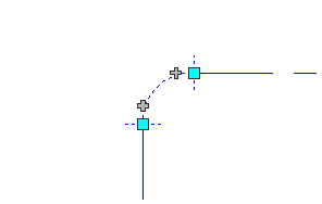 Alcuni raccordi contengono inoltre grip Aggiungi che consentono la creazione di una nuova derivazione direttamente dal raccordo. Ad esempio un gomito include grip Aggiungi utilizzabili per convertire automaticamente il gomito in un T, dal quale sarà quindi possibile tracciare una linea idraulica. Le derivazioni idrauliche esistenti resteranno connesse alle altre due connessioni del T.