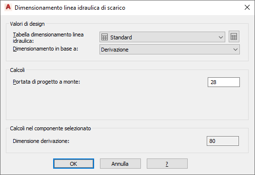 - In Valori di design, verificare che per Dimensionamento in base a sia stato selezionato Derivazione.