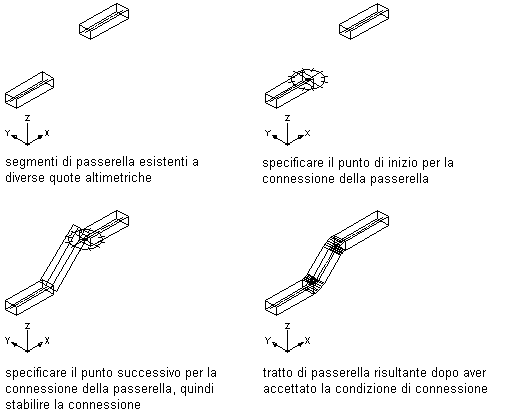 Connessione di segmenti di passerella a diverse quote altimetriche