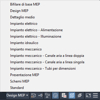 Oltre alla possibilità di utilizzare viste ortogonali e assonometriche in un disegno, in AutoCAD MEP 2027 toolset sono disponibili numerose impostazioni di visualizzazione che consentono di controllare l'aspetto degli oggetti in un disegno. Grazie alle rappresentazioni di visualizzazione è possibile controllare l'aspetto degli oggetti in viste diverse. Le configurazioni di visualizzazione sono gruppi di rappresentazioni di visualizzazione destinate ad attività specifiche. Ad esempio, è possibile passare da una configurazione di visualizzazione a linea singola ad una a due linee oppure ad una configurazione di visualizzazione apposita per un'area specifica in cui, ad esempio, siano visibili i sistemi meccanici con colori e tipi di linea specifici e tutti gli altri tipi di sistemi siano attenuati.