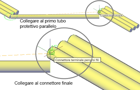 - Selezionare il tubo o il tubo protettivo parallelo. Assicurarsi di selezionare il punto di connessione finale punto sul tubo o tubo protettivo.