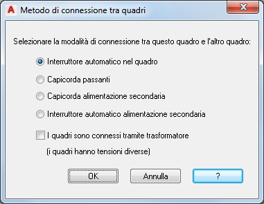 3. Nella finestra di dialogo Metodo di connessione tra quadri, selezionare il metodo da utilizzare per la connessione dei quadri, quindi fare clic su OK.
