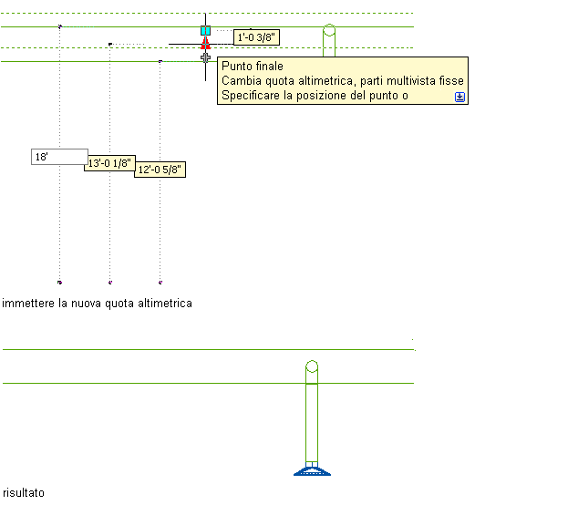 Nelle immagini seguenti viene illustrato come modificare la quota altimetrica di un segmento di canale aria.