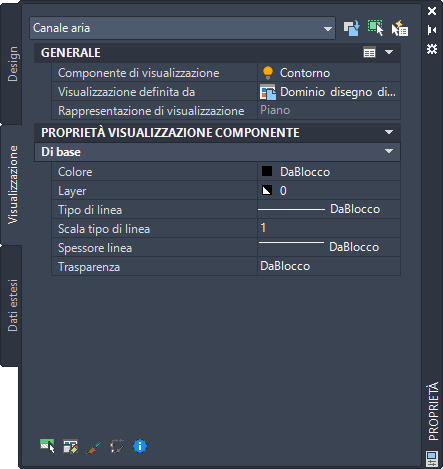 Proprietà di visualizzazione del canale aria nella scheda Visualizzazione