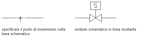 - Simboli in linea. Possono essere ancorati ad un punto qualsiasi di una linea schematica. Raccordi, valvole, indicatori e controlli quali interruttori, segnali e dispositivi rappresentano esempi di simboli in linea. Questi simboli si trovano sulla linea: vengono spostati insieme alla linea e cancellati se si cancella la linea. È tuttavia possibile cambiare la posizione del simbolo spostandolo lungo la linea schematica.