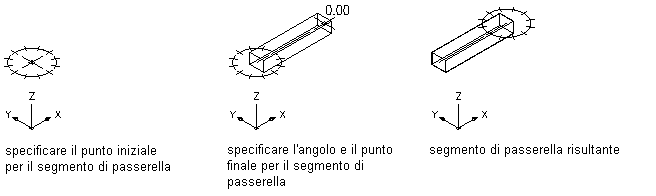 I tratti di passerella e tubo protettivo sono costituiti da segmenti disegnati singolarmente. Per disegnare un segmento, è necessario specificarne le proprietà, quindi specificare punti nel disegno.