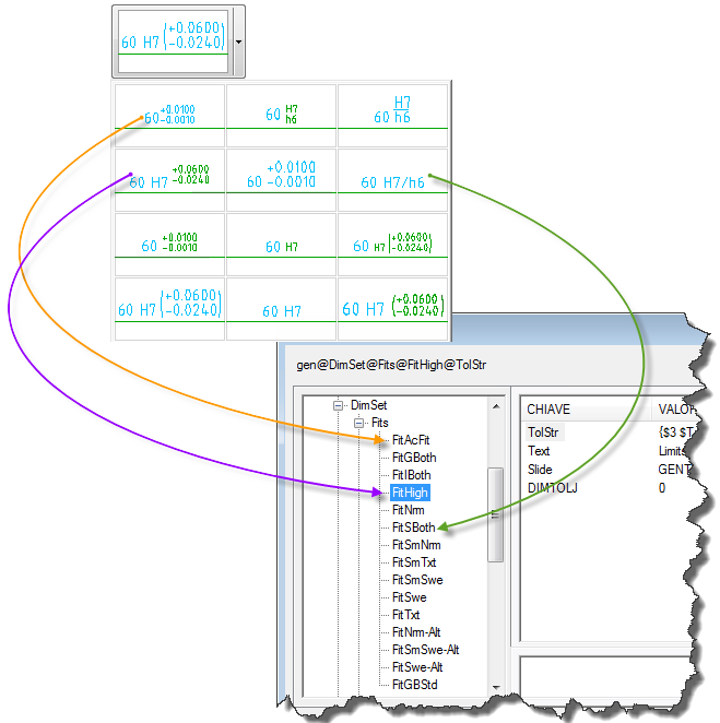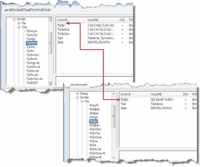Le chiavi per le voci sotto "Fit" e "Tols" sono le stesse, indipendentemente dal fatto che la voce sia un accoppiamento o una tolleranza.