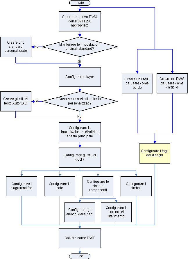 Il cartiglio XYZ_TB.dwg della società sarà disponibile nell'elenco a discesa "Cartiglio". I bordi A4L (A4 orizzontale), A4P (A4 verticale), A3, A2 e A1.dwg della società saranno disponibili nell'elenco a discesa "Formato carta".