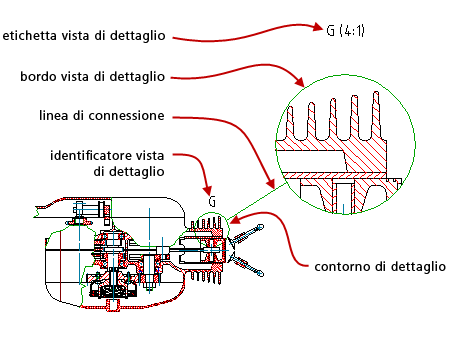 Uno stile di vista di dettaglio è una raccolta con nome di impostazioni che controllano l'aspetto dei contorni di dettaglio, degli identificatori e delle etichette delle viste di dettaglio.