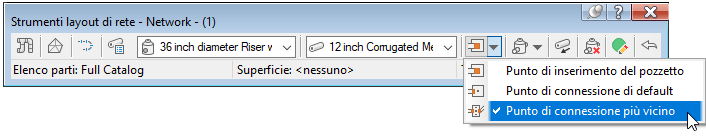 È possibile specificare il tipo di punti di connessione da utilizzare quando si esegue il layout delle reti di condotte.