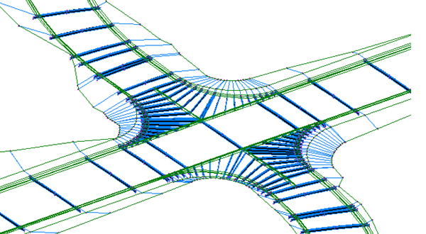 Modellatori. Un modellatore può essere creato automaticamente per rappresentare gli aspetti 3D dell'intersezione. È inoltre possibile aggiungere queste nuove informazioni sul modellatore ad un modellatore esistente sul tracciato o i tracciati di intersezione.