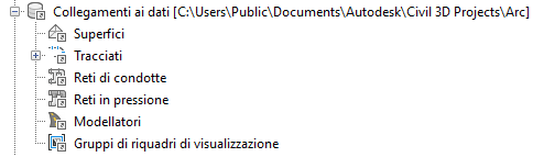 La cartella di lavoro di default per i progetti con collegamenti ai dati è C:\Utenti\Pubblica\Documenti\Autodesk\Civil 3D Projects. Tale cartella di lavoro viene utilizzata anche per i progetti Autodesk Vault e progetti di rilievo locali (non Vault).
