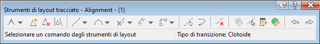 Il nome del tracciato attualmente selezionato viene visualizzato nella parte superiore della barra degli strumenti. Facendo clic sull'icona il comando corrente viene visualizzato nella parte inferiore della barra degli strumenti. La barra degli strumenti resta aperta se si modifica tramite grip il tracciato o si immette un altro comando. Si chiude se si elimina il tracciato attualmente selezionato o si fa clic sul pulsante X nell'angolo in alto a destra della barra degli strumenti.