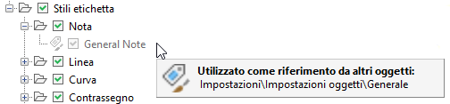 In questo esempio, le impostazioni dell'Oggetto generale vengono utilizzate come riferimento dello stile Nota generale, pertanto la casella di controllo per la Nota generale non può essere deselezionata.