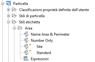 Anteprima dello stile di etichetta personalizzato per l'area della particella