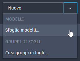 - Fare clic sulla freccia rivolta verso il basso per visualizzare ulteriori opzioni per la selezione del modello da utilizzare e per la creazione di un gruppo di fogli.