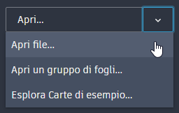 - Fare clic sulla freccia rivolta verso il basso per visualizzare ulteriori opzioni per l'apertura di gruppi di fogli o Carte di esempio.