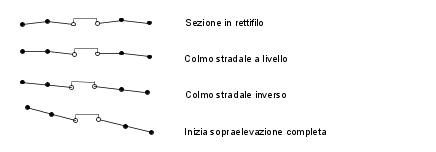 Nelle sezioni stradali a doppia carreggiata sono in genere disponibili due opzioni per sopraelevare ciascuno dei lati di una sezione stradale a doppia carreggiata.