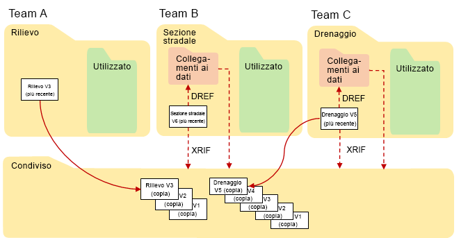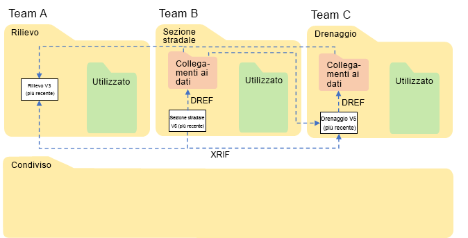- XRIF dei file DWG degli altri team dalla cartella di lavoro.