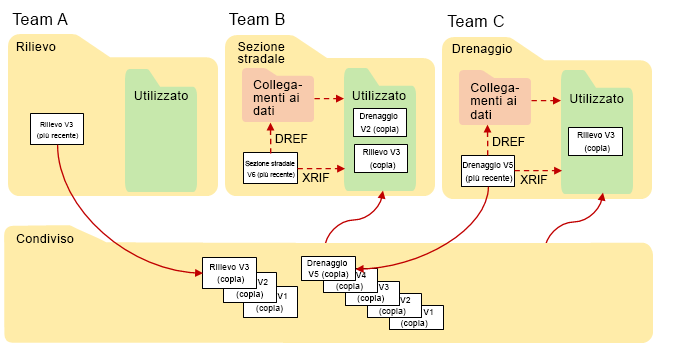 - DREF degli oggetti Civil 3D degli altri team dalla cartella di lavoro.
