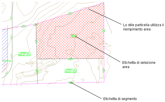 Sono disponibili stili di particella separati per le aree e i lati delle particelle.
