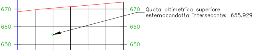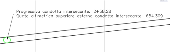 Se la condotta in pressione intersecante viene spostata in un'altra progressiva lungo il tracciato, le etichette vengono aggiornate con le nuove informazioni di progressiva e quota altimetrica.