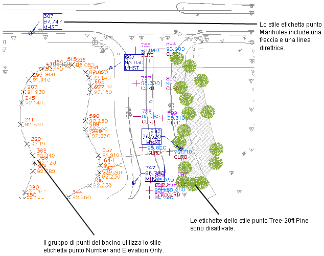 Autodesk Civil 3D. È possibile utilizzarli nei progetti di gestione del territorio per identificare le posizioni territoriali e gli elementi di progettazione esistenti.