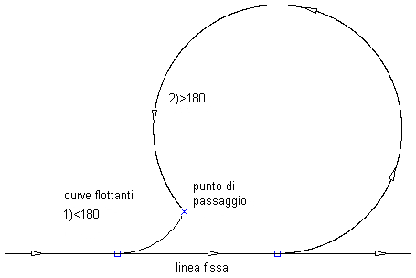Nella seguente figura vengono illustrate una curva flottante collegata ad una linea fissa e due possibili soluzioni per un raggio e un punto specifici: