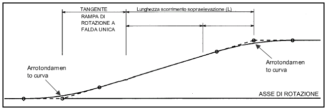 Immettere un valore di lunghezza maggiore di zero. Questo valore viene visualizzato nella colonna dell'arrotondamento curva dell'editor griglia tabella. Una curva uniforme viene visualizzata anche nella vista e nella finca sopraelevazione in corrispondenza della progressiva critica appropriata.