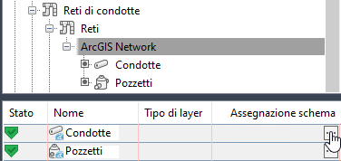 Come configurare l'assegnazione schema delle reti di condotte dopo aver eseguito l'importazione di dati ArcGIS in una Carta