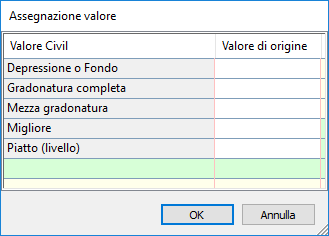 Per ciascun Valore Civil elencato, è possibile immettere un Valore di origine che era assegnato all'attributo ArcGIS. Se viene trovato il Valore di origine per una parte nell'origine, il Valore Civil verrà applicato a quella parte.