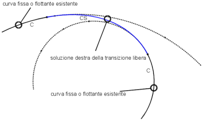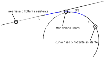 È possibile aggiungere una transizione libera tra due linee in situazioni nelle quali si desidera che le transizioni siano sempre tangenti alle linee alle quali sono collegate. Per questa soluzione, le transizioni sono transizioni semplici, transizioni in ingresso o in uscita.