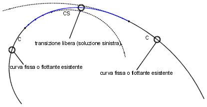 Nella seguente figura viene illustrata una transizione libera tra due linee. Di seguito sono indicate le soluzioni possibili.