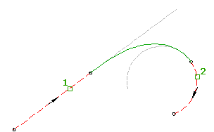 Nella seguente illustrazione viene mostrata una transizione libera tra una linea e una curva, in cui la linea è stata selezionata per prima:
