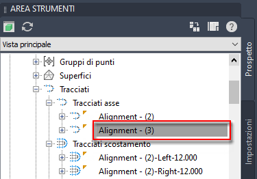 raccolta Tracciati di riferimento della struttura Prospetto. Utilizzare questo comando per trovare rapidamente il percorso di un tracciato di intersezione nella struttura Prospetto.