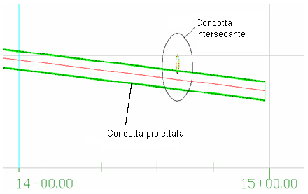 Nell'illustrazione riportata di seguito sono mostrate un'intersezione di condotta e una condotta proiettata in una vista sezioni.