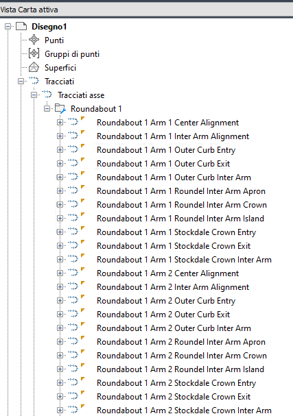 Una volta creati, gli oggetti rotatoria vengono visualizzati come rotatorie con nome.