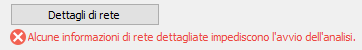 Se non è possibile eseguire il tipo di analisi selezionato, viene visualizzato un messaggio di errore sotto il pulsante Dettagli di rete nella pagina Generale della finestra di dialogo Analisi rete a gravità.