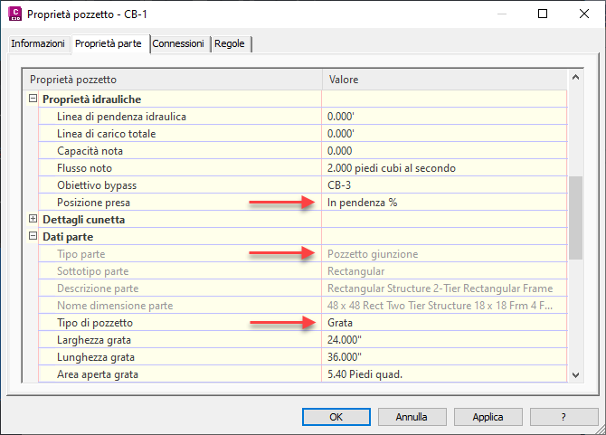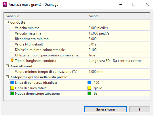 Per ulteriori informazioni, vedere Assegnazione dei parametri di pozzetto di drenaggio per l'analisi della rete a gravità.