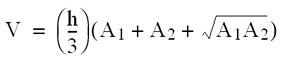 in cui V è il volume calcolato da due aree A1 e A2 e la distanza h tra le due aree.