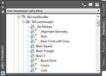 È possibile aggiornare gli stili e le impostazioni nella Carta corrente tramite importazione da un modello della Carta (DWT) o da una Carta (DWG).