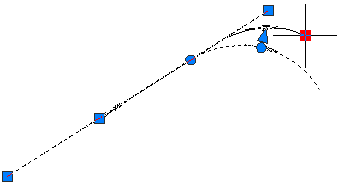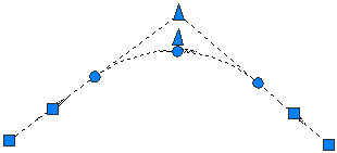Grip dei punti finali per trascinare l'inizio o la fine della curva lungo l'entità collegata: