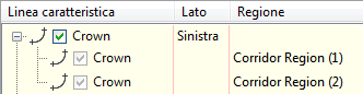 Se è stata selezionata una linea caratteristica all'interno di una serie di segmenti di linee caratteristiche che condividono lo stesso codice, l'opzione Unisci linee caratteristiche in regioni adiacenti consente di selezionare automaticamente tutte le altre linee caratteristiche in tale serie, che si trovino o meno in regioni contigue; inoltre, le caselle di controllo associate a singoli segmenti di linea caratteristica vengono visualizzate in grigio.