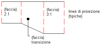 Se si specifica che il punto iniziale di una regione di scarpata deve iniziare da una scarpata esistente sulla stessa impronta, viene richiesto di creare una regione di transizione. È inoltre possibile inserire regioni di transizione utilizzando gli Strumenti di creazione scarpata.