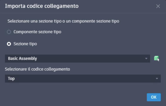 per scegliere manualmente un componente sezione tipo o una sezione tipo dalla Carta. Una volta selezionato, specificare un codice collegamento dall'elenco a discesa.