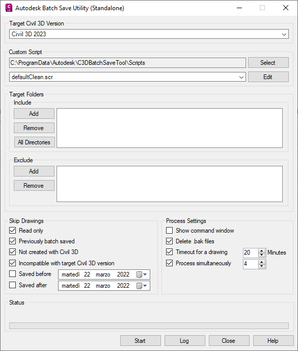 - Autodesk Batch Save Utility può essere utilizzato per aprire e salvare più Carte e modelli nella versione corrente o in una nuova versione dell'applicazione. Ad esempio, quando si installa una nuova versione di Autodesk Civil 3D, è possibile utilizzare questa utilità per salvare i file nella nuova versione.